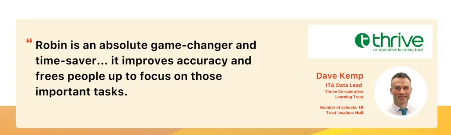 We sat down with Dave Kemp, IT and Data Lead from Thrive Co-Operative Learning Trust and heard how their Trust is on a mission to reduce manual, time-consuming tasks with the help of AI.